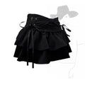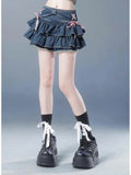 Pleated Denim Skirt with Bow – Women's A-line Shorts Skirt